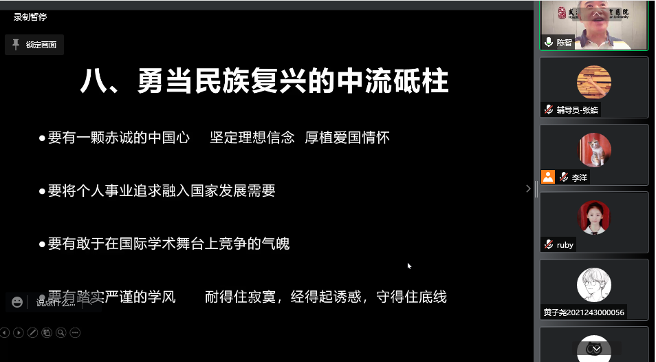 陳智教授從自身經曆出發,向同學們分享了自己求學和工作的相關經曆,勉勵廣大同學無論在學業上還是工作中都要始終保持學習和思考的習慣,熱愛祖國,将自身志向與國家建設事業結合起來,把個人前途融入國家發展大局之中,與祖國共同進步共同發展。
