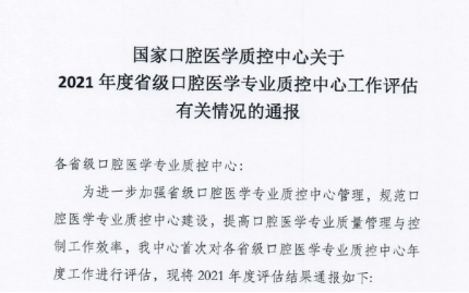 湖北省口腔醫療質量控制中心在2021年度國家評估中取得佳績